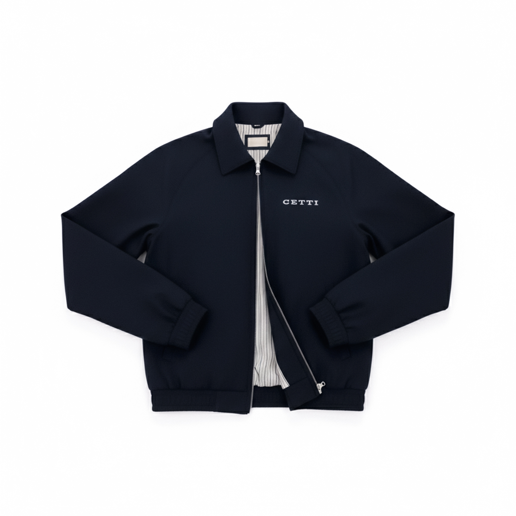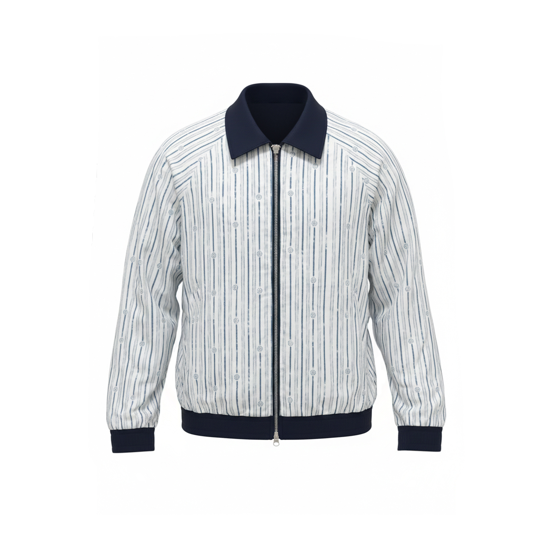 Jaqueta dupla-face de sarja com o verso sublimado em tecido 100% algodão com zíper YKK duplo em prata e logo bordada.